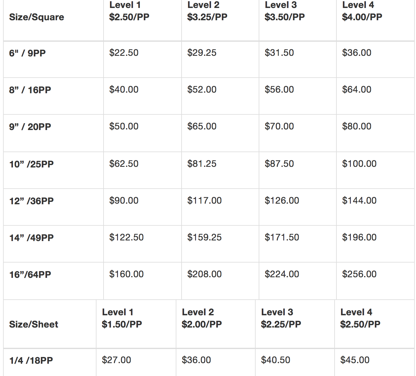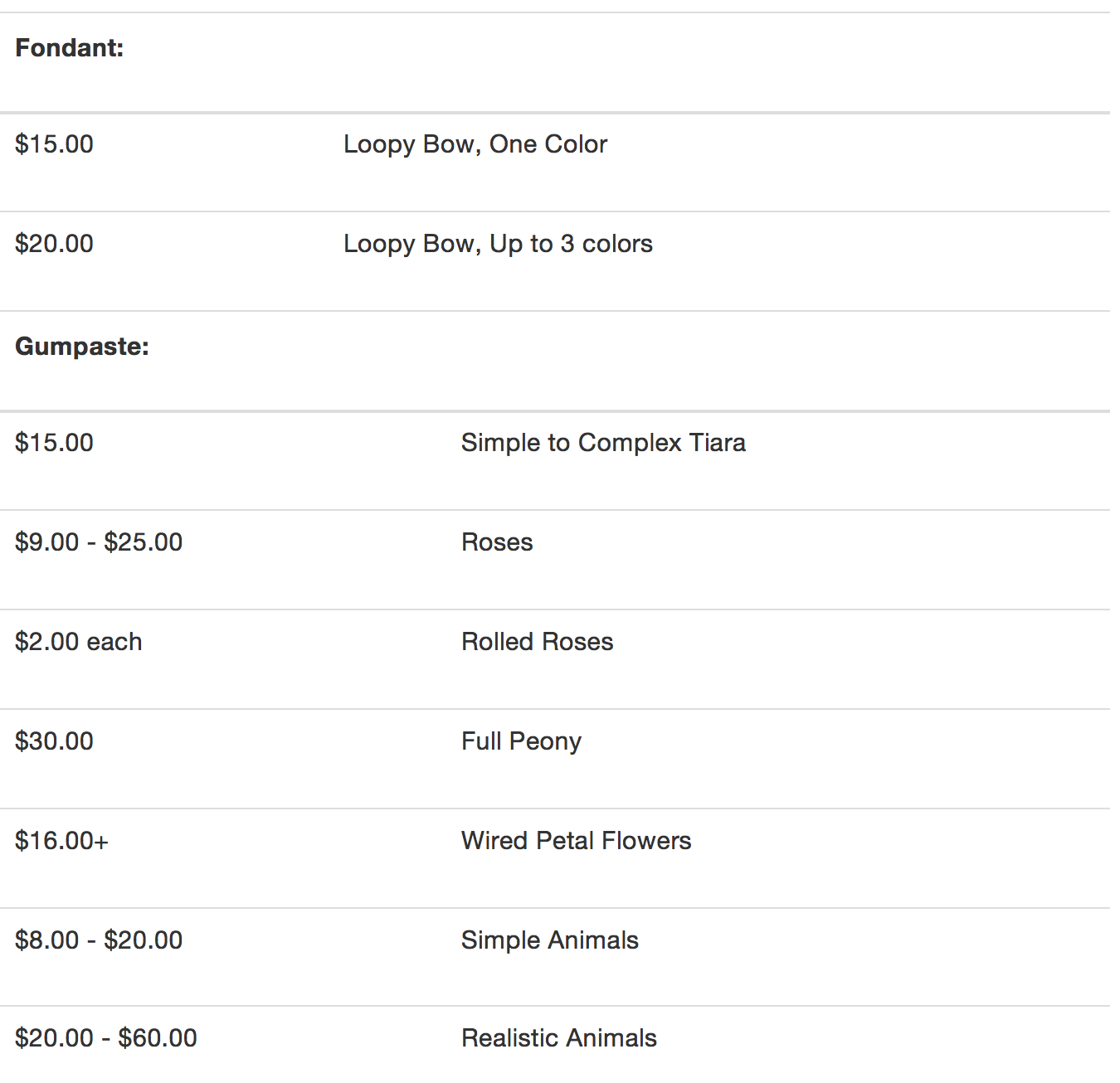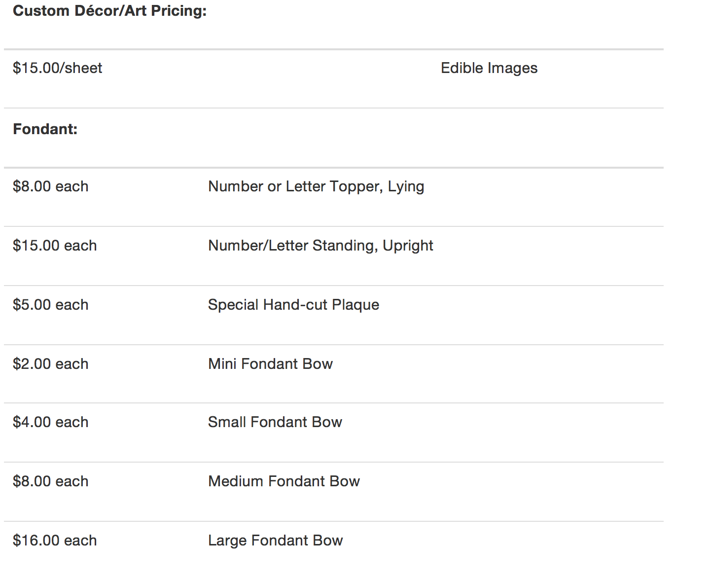 When ordering a cake there are two questions you need to ask yourself. The first question is how fancy do I want this cake? Cake decorations may be very simple to very intricate; therefore they are divided into levels of difficulty and priced accordingly.